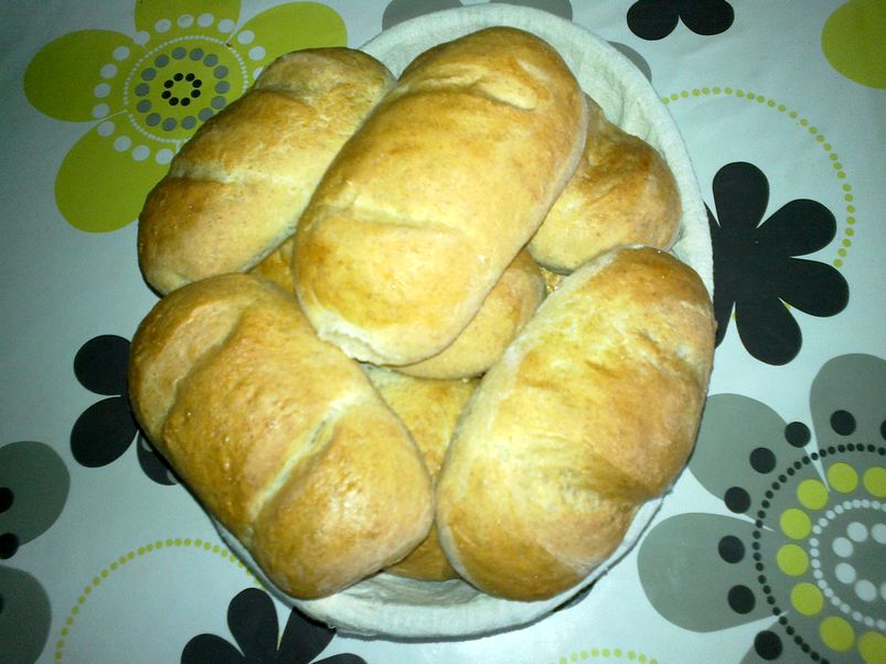 Zsemlék Kenyeret és zsemlét is egyre ritkábban veszünk boltban, inkább itthon sütök pékárút is. Többféle receptet használok, most a leggyakrabban elkészítettet adom közre. Hozzávalók: 35 dkg búzaliszt 15 dkg rozsliszt 3 dkg élesztő 1 dl tej 2 dl víz 3 evőkanál kefír cukor só Elkészítés: Az élesztővel, a tejjel, egy pici cukorral és 2 kanál liszttel kovászt készítek. Ezt egy kelesztő tálban összekeverem a többi hozzávalóval, és a robotgép dagasztó karjával jól kidolgozom. A kelesztő tálamnak, vagy ahogyan a férjem hívja, a csodatálamnak köszönhetően, amit szintén édesanyámtól örököltem, nagyon hamar megkel a tészta. Amikor ez megtörtént, deszkára borítom, és zsemléket formázom belőle, majd sütőlemezen 30-40 percig ismét kelesztem őket, megkenem a tetejüket, és a 180 fokra előmelegített sütőben 25-30 perc alatt megsütöm. |