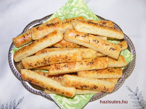 Sajtos rúd Ez egy remek vendégváró, hiszen pillanatok alatt elkészül, és igen ízletes, különösen akkor ideális, ha egy kis bor is előkerül, de természetesen önmagában is kiváló. Édesanyám is kedvelte, számtalan alkalomra elkészítette, a recept is tőle származik. Hozzávalók: 40 dkg liszt 25 dkg margarin 15 dkg sajt 1 tojás sárgája 3 dkg élesztő 1 pohár tejföl só Elkészítés: A lisztet a margarinnal elmorzsoljuk, hozzáadjuk a tejfölt, amelyben elkevertük a tojás sárgáját és az élesztőt, végül belereszeljük a sajtot. A sót már az elején hozzáadom a liszthez, a mennyisége attól függ, mennyire sós sajtot használunk. Az egészet összegyúrjuk, majd deszkán kisodorjuk és derelyevágóval feldaraboljuk. Előmelegített, 200 fokos sütőben kb.15 perc alatt megsütjük. |