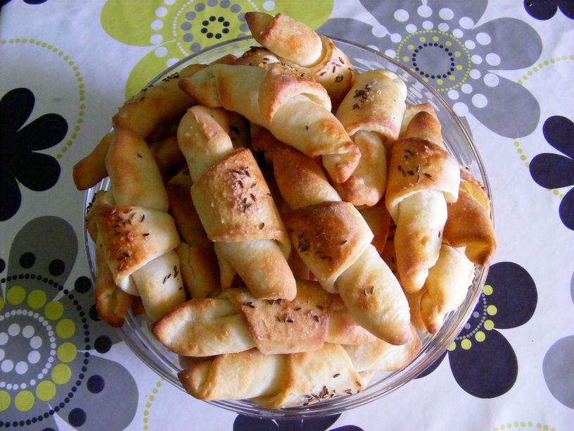 Sörkifli Ezt a receptet kisfiam óvónénijétől kaptam, ilyet hozott ugyanis az ovis búcsúztatóra, és mindnekinek nagyon ízlett, úgyhogy pillanatok alatt elfogyott. Legközelebb, mikor férjem ment a gyerekkori barátjához, megsütöttem, és ott is tetszést aratott, annak ellenére, hogy ők inkább borozni szoktak, nem sörözni. :)) Hozzávalók: 50 dkg liszt 2 dkg élesztő 1 dl tej 1 kanál só 1 kávéskanál cukor 25 dkg vaj Elkészítés: Az élesztőt a tejjel és a cukorral felfuttatjuk. Ezt az elegyet a liszt közepébe öntjük, és hozzáadunk még kb 1,5 dl tejet, és jól összedolgozzuk. Négy részre osztjuk, mindegyiket köralakúra, kb. fél cm vastagra kisodorjuk, megkenjük 6 dkg langyos vajjal, majd derelyevágóval 8 egyenlő cikket vágunk belőle. (Olyan lesz, mint a pizza szeletelés után.) A cikkelyeket a szélesebb felüktől haladva, kifli formára feltekerjük, és sütőpapírral letakart sütőlemezre fektetjük. Előmelegített, 180-200 fokos sütőben ropogósra sütjük. Közvetlenül sütés előtt megszórjhatjuk őket sóval, köménymaggal, és ha van maradék tojásfehérjénk, azzal is megkenhetjük, szebb, pirosabb lesz tőle. |