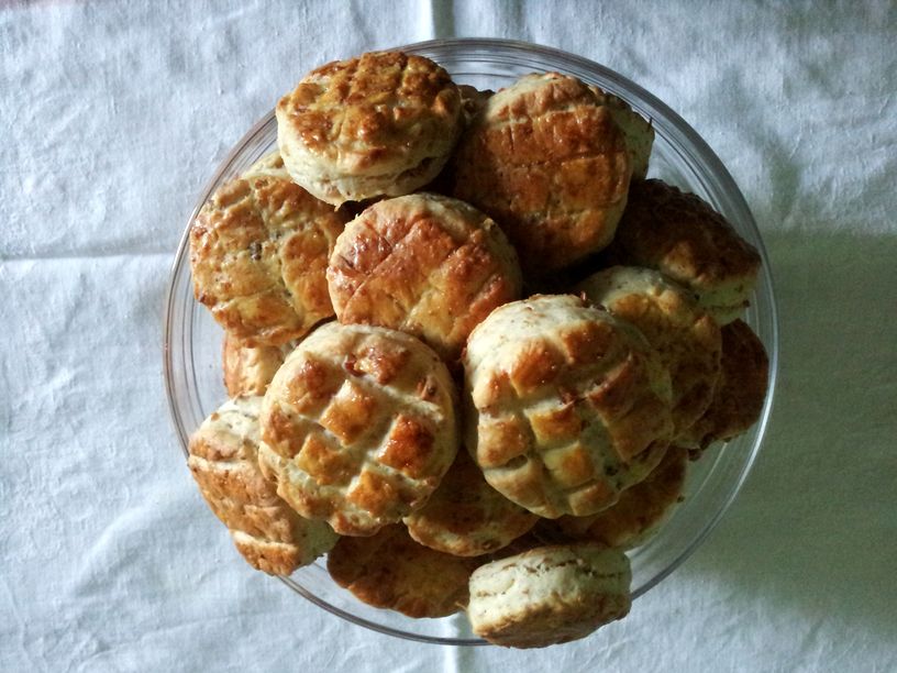 Ebből a tésztából a pogácsa is kitűnő. Az elkészítése is hasonló, annyi a különbség, hogy kicsit vastagabbra sodorjuk, és derelyevágó helyett pogácsaszaggatót használunk. |