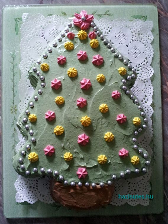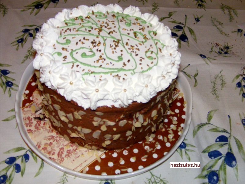 Gesztenyés torta Ezt a tortát, mint ahogyan a formája is árulkodik róla, karácsonyra sütöttem. Hozzávalók a krémhez: 1/2 l tej 3 tojás sárgája 3 ek. liszt 15 dkg cukor 25 dkg gesztenyemassza 3 dl tejszín Elkészítés: A tejet felforraljuk. A tojások sárgáját a cukorral és a liszttel simára keverjük, hozzáöntjük a tejet és sűrűre főzzük. A kihűlt krémhez hozzáadjuk a gesztenyét és a felvert tejszínt. |