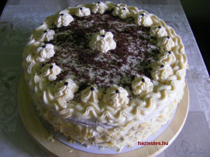 Oroszkrém torta Férjem egyik cimborájának a születésnapjára sütöttem, és a kisfiam is ilyet kért az ő szülinapjára, bár neki a rumot aromával helyettesítettem. Hozzávalók a krémhez (nagynéném receptje): 3 dl tej 9 dkg cukor 6 dkg liszt 3 dl tejszín 2 dl rum 2 tojás sárgája 1 cs. vaníliás cukor mazsola A mazsolát beáztatjuk a rumban, és félretesszük. A lisztet és a tojás sárgáját egy kevés tejjel simára keverjük, a többi tejet a cukorral és a vaníliás cukorral felforraljuk, majd a lisztes péppel besűrítjük. Amikor a krém kihűlt, hozzákeverjük a felvert tejszínt. A 3 karikára vágott piskótát meglocsoljuk a leszűrt mazsola levével, megkenjük a krémmel, rászórjuk a mazsolát és összeállítjuk a tortát. |