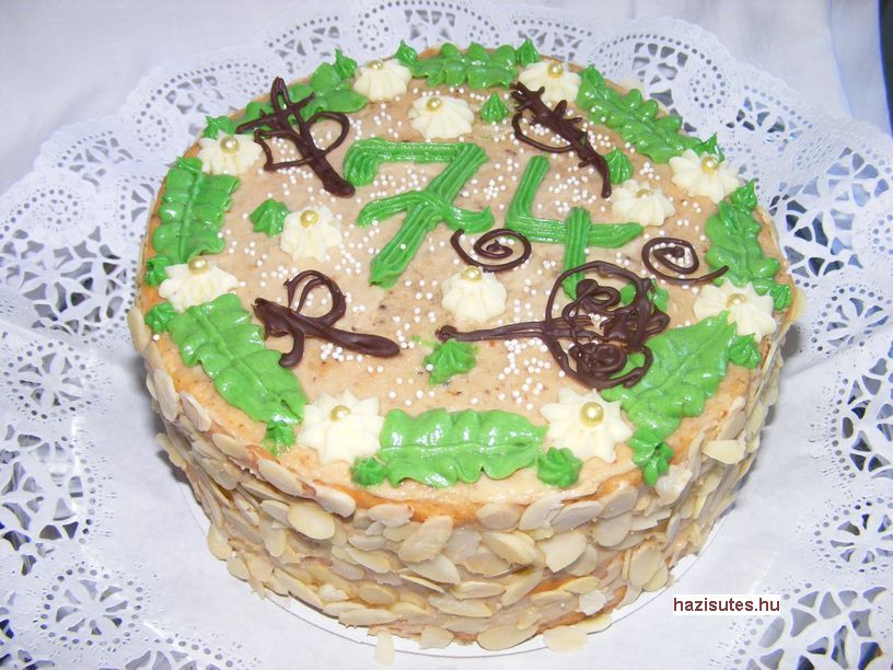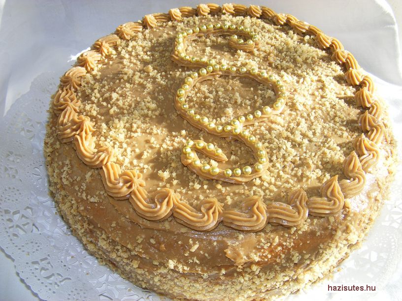 Eszterházy-féle torta Nem klasszikus Eszterházy-torta, ugynais a tésztájába belekerült a tojások sárgája is, az eredeti pedig csak fehérjéből készül. A krémbe is tettem kávét, ami szintén nincs a hagyományosban, lehet, hogy az elnevezésen is változtatok. :)) Hozzávalók a tésztához: 6 tojás 24 dkg cukor 20 dkg liszt 10 dkg darált dió A krémhez: 3 tojás 3 ek. liszt 15 dkg vaj 15 dkg cukor 2 dl tej 1 cs. vaníliás cukor 1 dl kávé A tésztához jó keményre felverjük a tojásfehérjét. A tojás sárgáját a cukorral habosra keverjük, hozzáadjuk a liszt, dió, keverékét és óvatosan beleforgatjuk a tojás fehérjét is. A krém pedig a csokikrémhez hasonlóan készül, a vaj kivételével a többi összetevőt gőz fölött sűrűre főzöm, amikor kihűlt, összekeverem a vajjal. |
