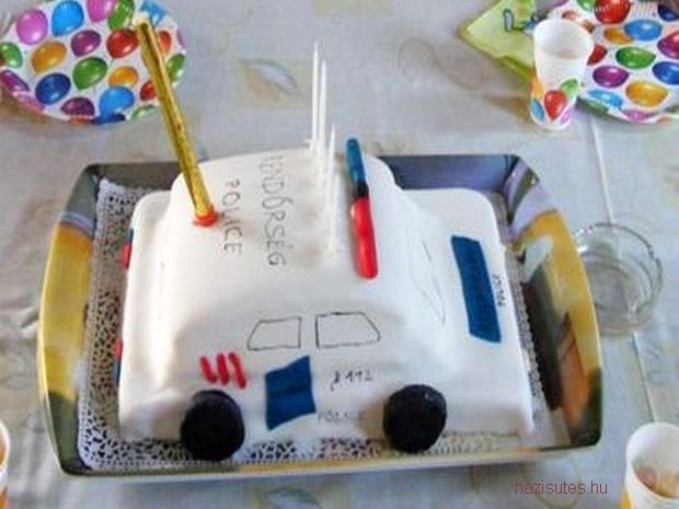 Az első marcipános munkám, úgy is mondhatnám, az első próbálkozás. Kisfiam igen nagy társadalmi életet élt az oviban, ez megmutatkozott a szülinapi meghívások számában is, amelyeket illik viszonozni, így hamarosan beléptünk mi is a partit tartók sorába. Gyermekem akkor éppen rendőr akart lenni, ezért egyértelmű volt, hogy a tortában is ez az elképzelés köszön vissza. Gondoltam egy merészet, és úgy döntöttem, én készítem el a tortáját, méghozzá egy rendőrautó formájában. Határozott elképzelésem volt, de azért biztos, ami biztos alapon konzultáltam egyet férjem lányával, aki végzettségét tekintve cukrász, bár nem gyakorolja eme tudományát. Felkutattam, honnan tudom a hozzávalókat beszerezni, és nekiláttam. A családnak csak akkor mutattam meg, amikor már teljesen kész volt. Férjem mikor meglátta, csak ennyit mondott: "és megcsinálta!" Lehet, hogy nem nagyon bízott benne? :)) |