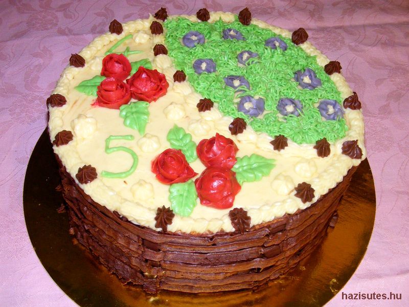 Csokoládé torta A tortákat az esetek többségében vizes piskótából, főzött csokoládé krémmel készítem, leginkább ez jön be mindenkinek. Keresztlányomnak a szülinapjára egy narancsos mascarponés tortát vittem, de azt mondta, legközelebb inkább csokist vigyek. :)) A többieknek ízlett a nem annyira hagyományos, kellemes, könnyű krémes torta, a gyerekek azonban 7 évesen, érthető módon, inkább a csokoládéra szavaznak. Vizes piskóta (édesanyám receptje): Az 1 tojáshoz 5 dkg lisztet, 4 dkg cukrot és 1 evőkanál vizet számolok. Konkrét példa: 5 tojás, 25 dkg liszt, 20 dkg cukor, 5 ek. víz, kávéskanál sütőpor. Csokoládé krém: Hozzávalók: 10 dkg porcukor 1 cs. vaníliás cukor 3 tojás sárgája 3 evőkanál liszt 2,5 dl tej 25 dkg csokoládé 20 dkg vaj Elkészítés: A cukrot a tojások sárgájával, a liszttel és a tejjel gőz fölött sűrű krémmé főzöm. Szintén gőz fölött megolvasztom a csokoládét. A vajat pedig habosra keverem. Amikor a sűrű krém és a csokoládé kihűlt, akkor összekeverem őket, és hozzáadom a vajat is. Ezzel a krémmel töltöm meg a tortát. Ez a mennyiség egy 12 szeletes tortához elegendő. A torták külsejére általában nem krémet, hanem fondant használok. |