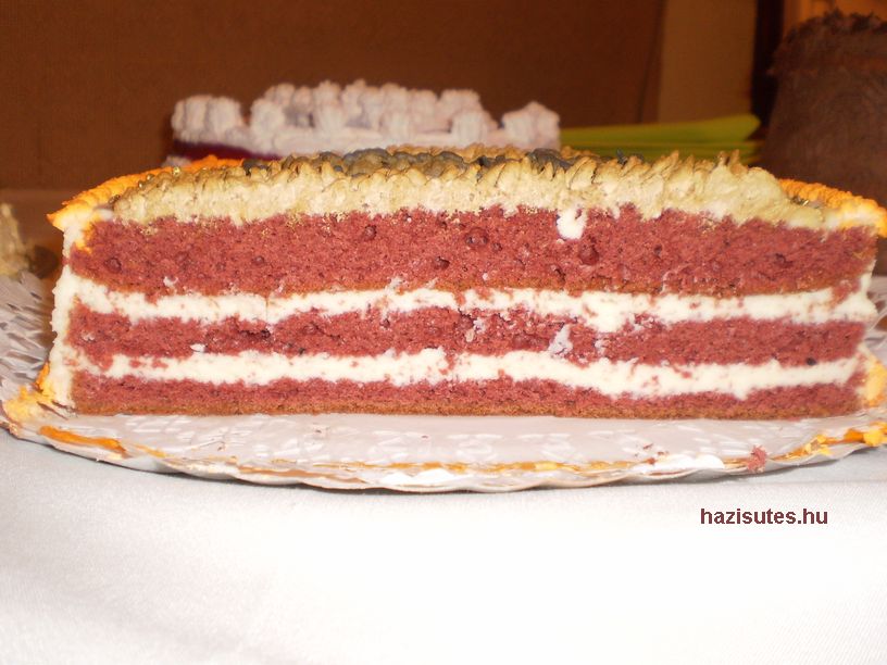 Vörösbársony torta Keresztlányom nagymamája, aki szintén nagyon jókat és mutatósakat süt, emlegette korábban a vörösbársony tortát. Megláttam egy tévéműsorban, majd egy magazinban, gondoltam, megpróbálom. Kisfiam iskolás kisbarátjának a szülinapjára voltunk hivatalosak, és oda sütöttem egyet. |